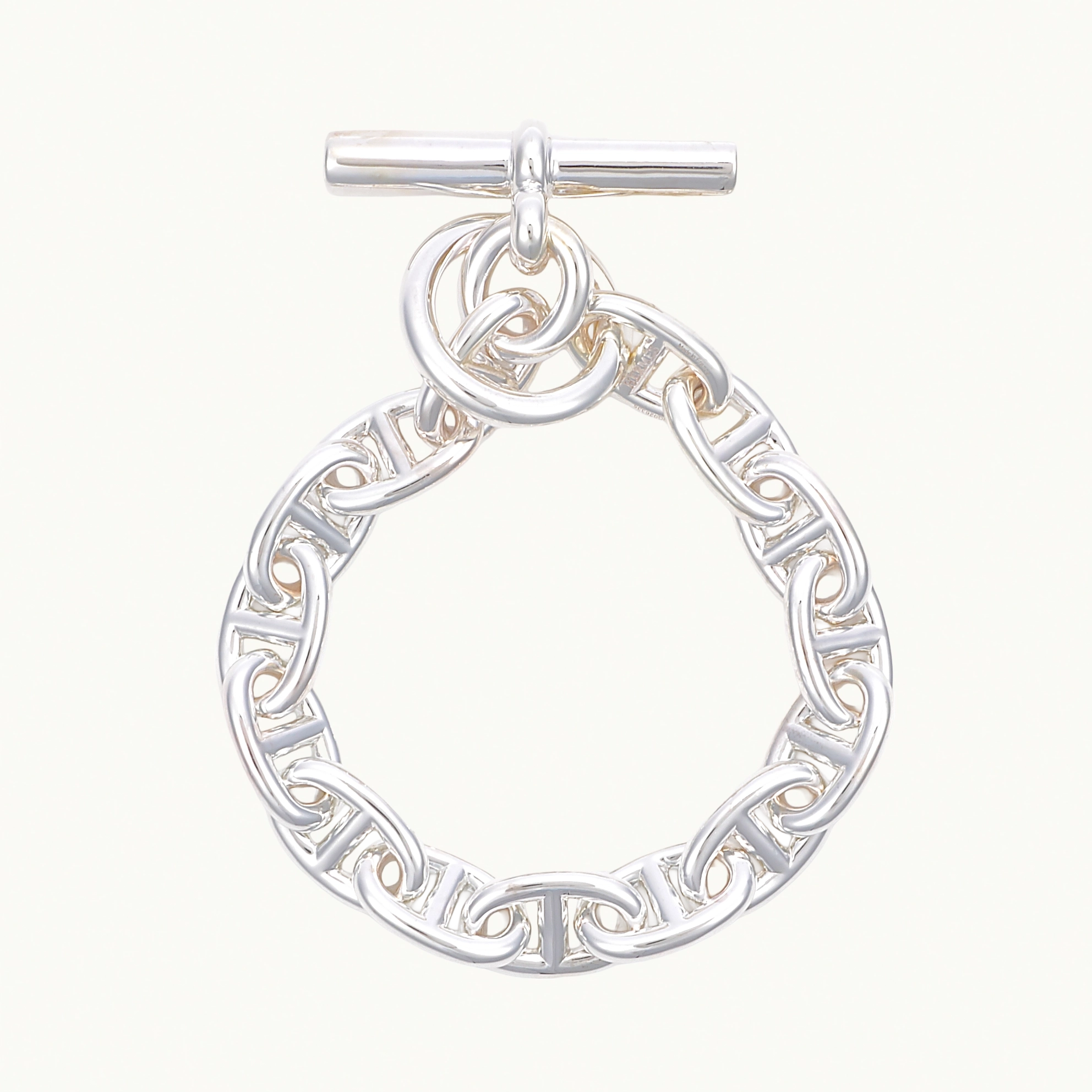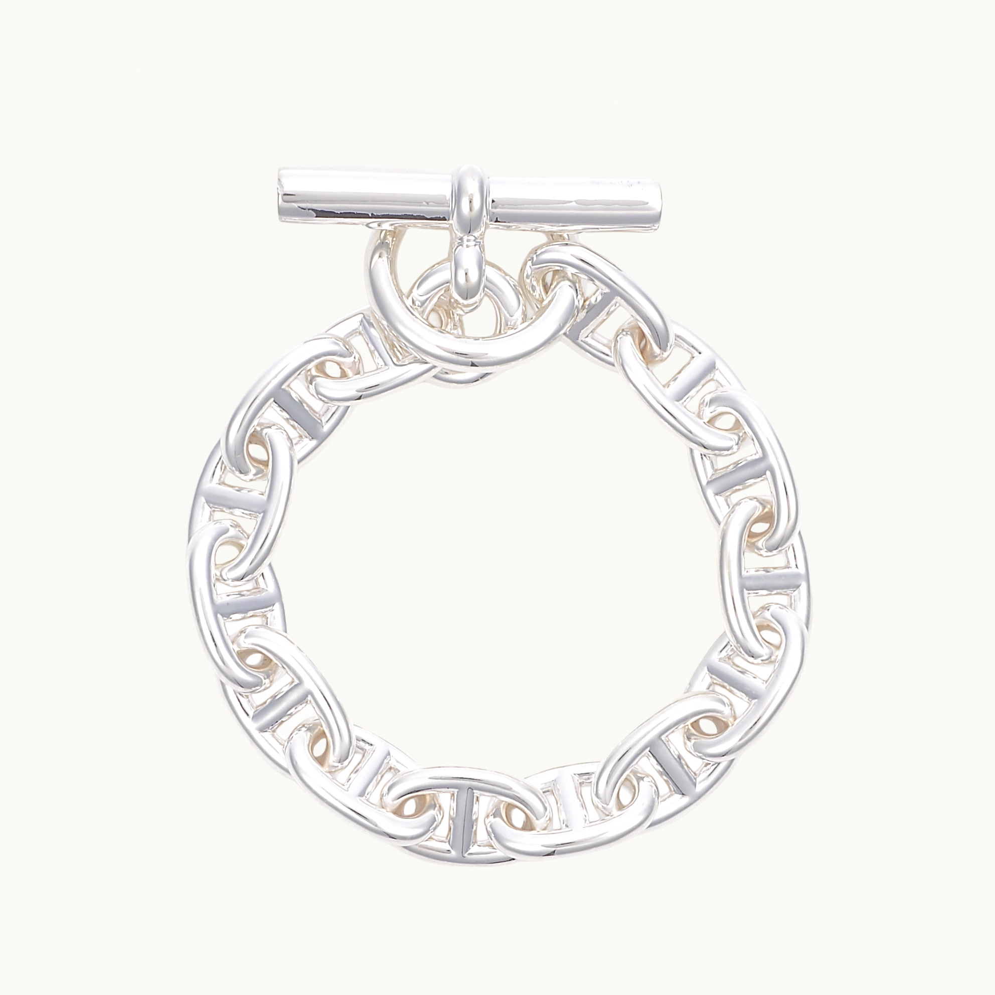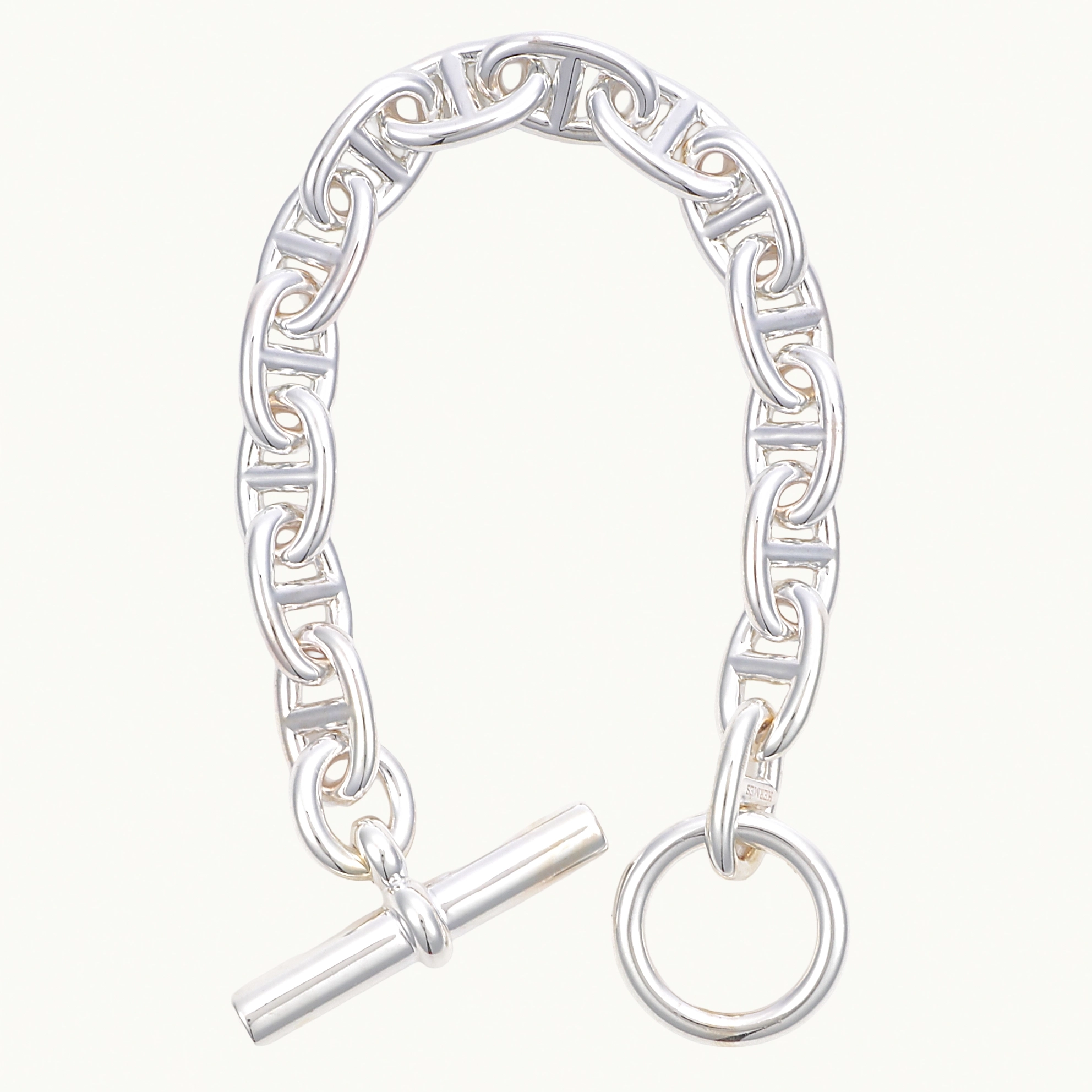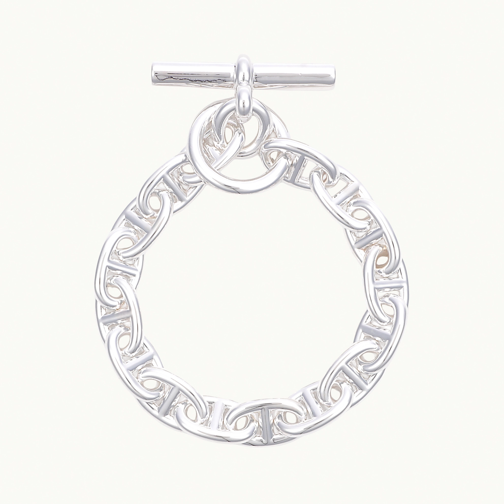 1938年、エルメスの4代目ロベール・デュマによって生み出された「シェーヌダンクル(Chaine d’Ancre)」は、フランス語で“錨の鎖”を意味し、海と絆を象徴するタイムレスなジュエリーデザインとして、今なお世界中で高い人気を誇ります。実際に港で目にするアンカーチェーンをモチーフに、機能美と詩的なリズム感を併せ持つこのチェーンは、エルメスの中でも最も象徴的なシルバージュエリーのひとつです。