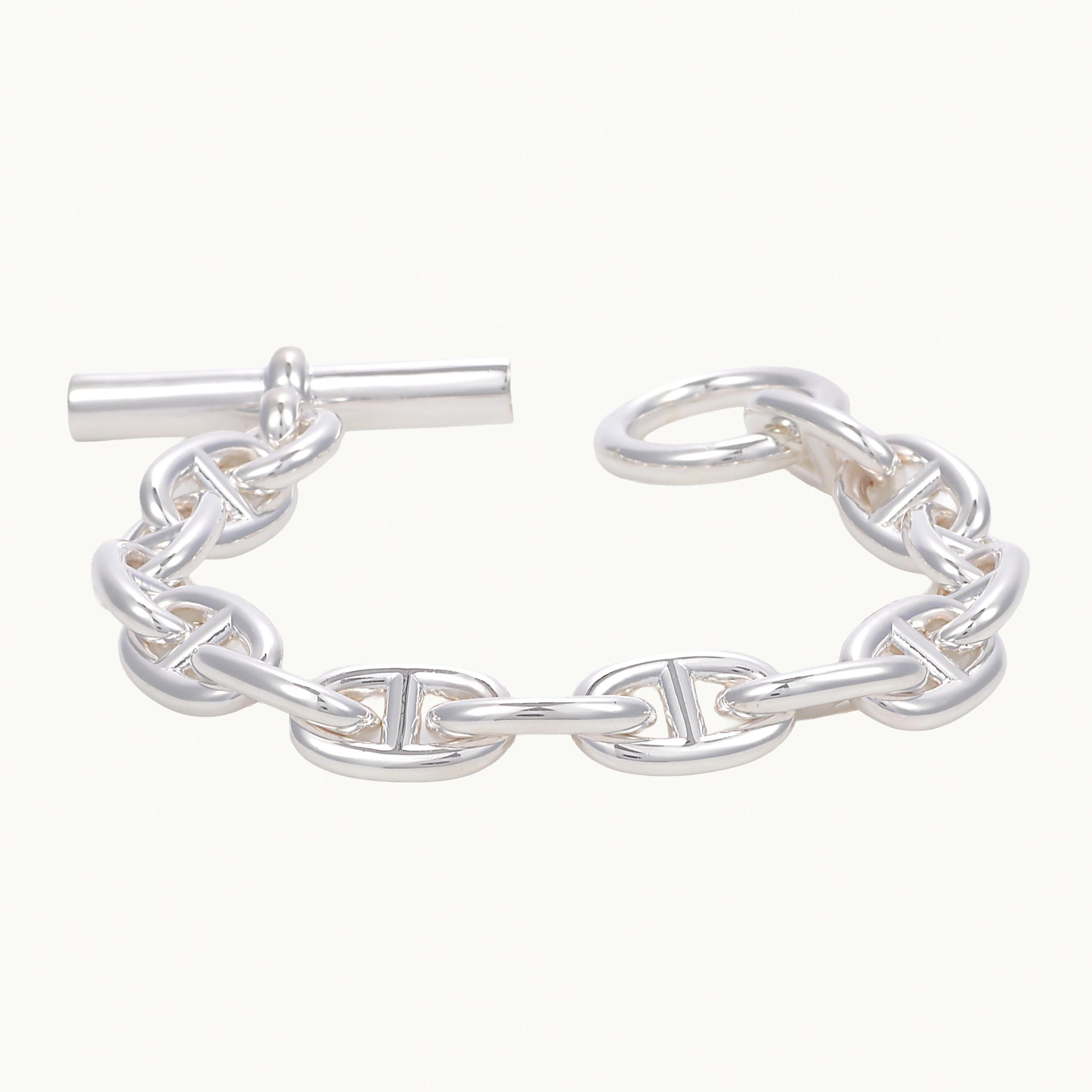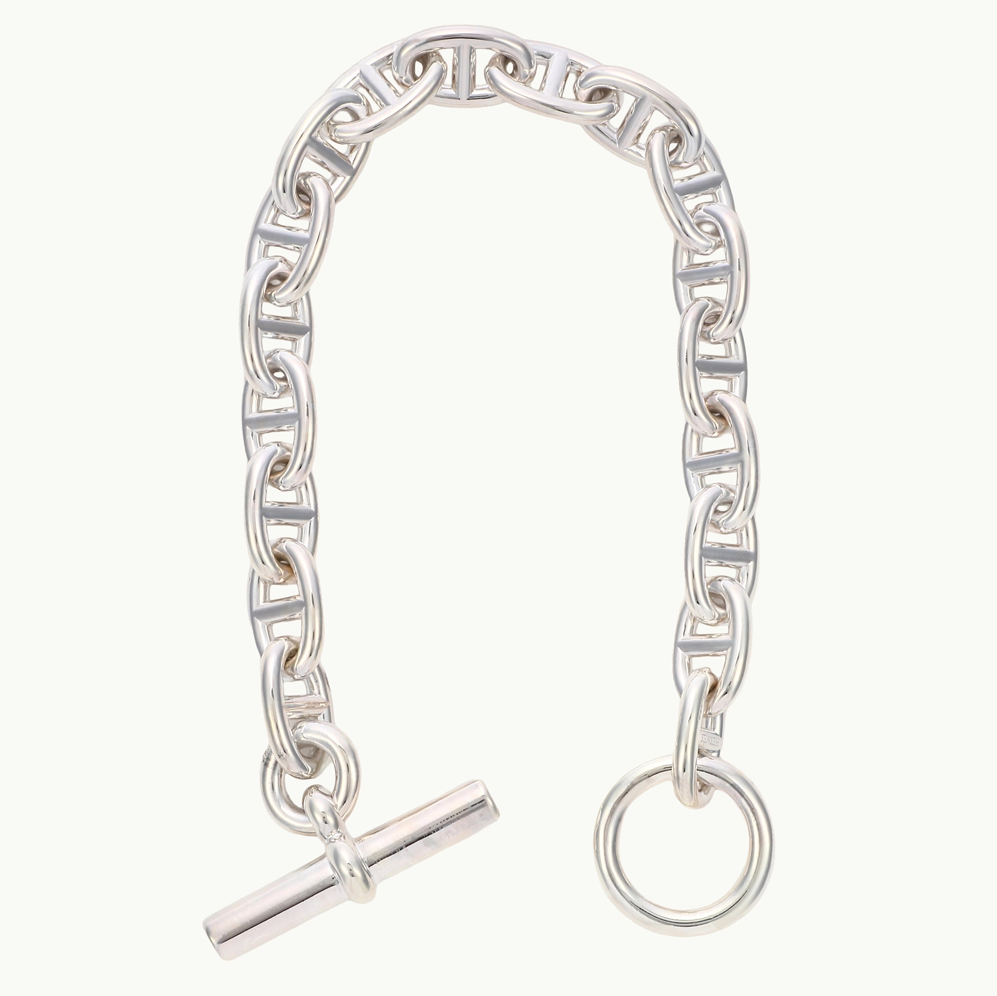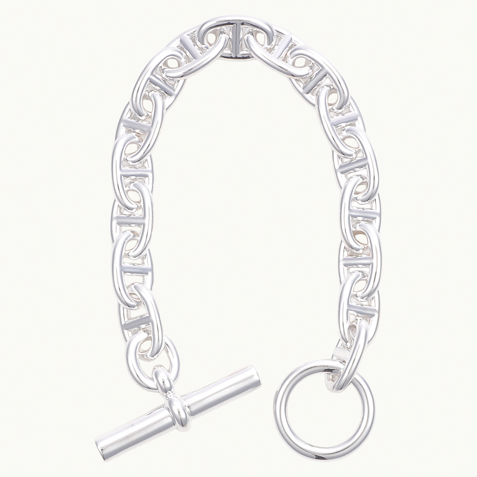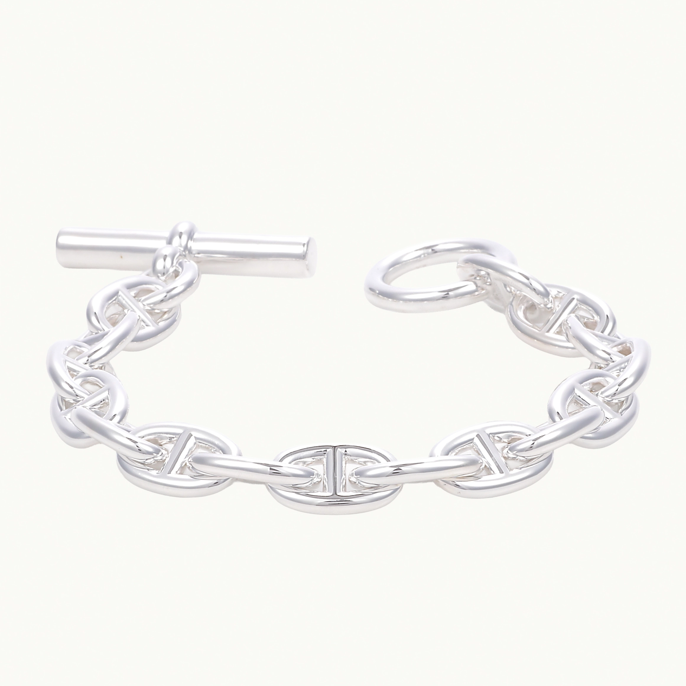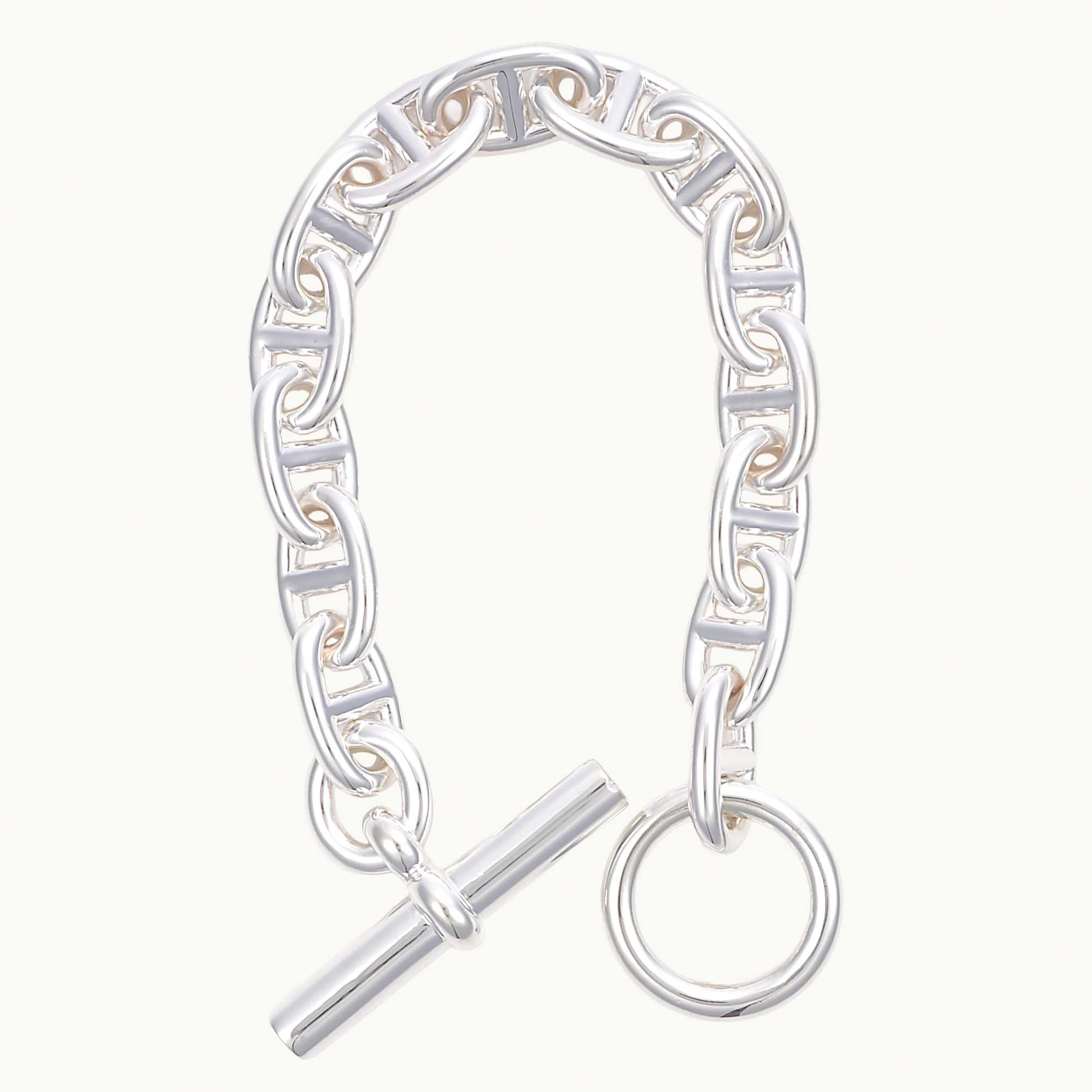 1938年、エルメスの4代目ロベール・デュマによって生み出された「シェーヌダンクル(Chaine d’Ancre)」は、フランス語で“錨の鎖”を意味し、海と絆を象徴するタイムレスなジュエリーデザインとして、今なお世界中で高い人気を誇ります。実際に港で目にするアンカーチェーンをモチーフに、機能美と詩的なリズム感を併せ持つこのチェーンは、エルメスの中でも最も象徴的なシルバージュエリーのひとつです。